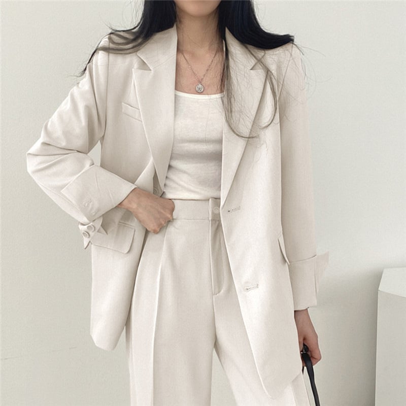 Effortless Elegance in Our Loose-Fit Long-Sleeve Top & High-Waisted Trousers Set