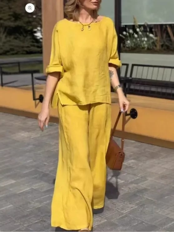 New Arrivals🔥 Stylish Cozy Zipper Shirt & Wide-Leg Pants Linen Cotton Two-Piece Set