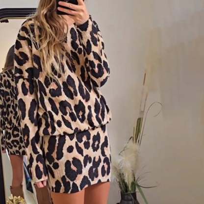 Elegant Round Neck Leopard Print Mini Dress (Buy 2 Free Shipping)