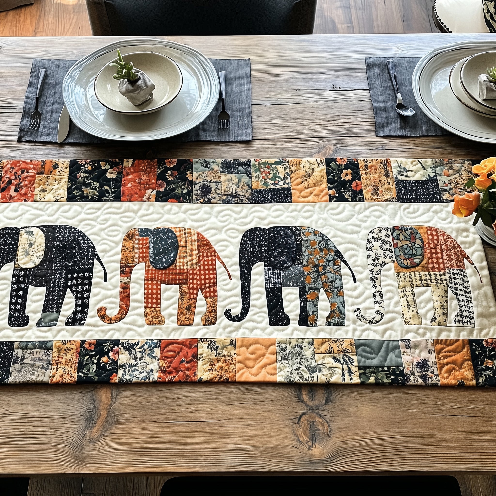 Elephant Harmony Path Quilted Table Runner GFTOHD6420