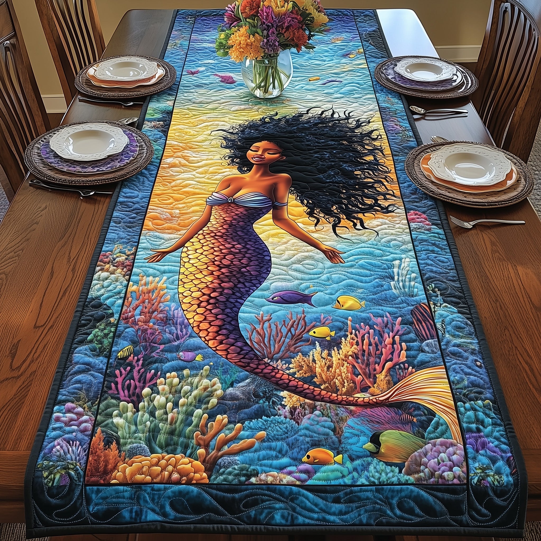 Enchanted Mermaid Quilted Table Runner GFTOTP8488