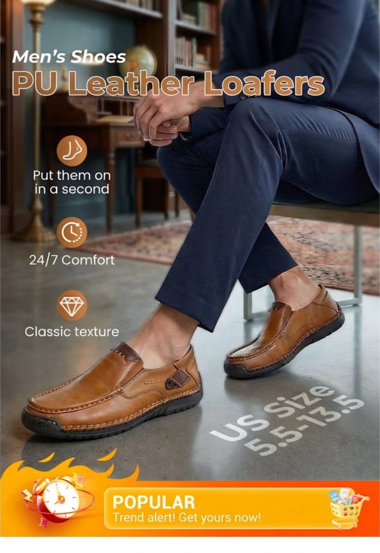 🔥 50% OFF ⏰ Classic Men’s Leather Shoes – Breathable Calfskin, Slip-On Comfort & Timeless Style! 👞✨